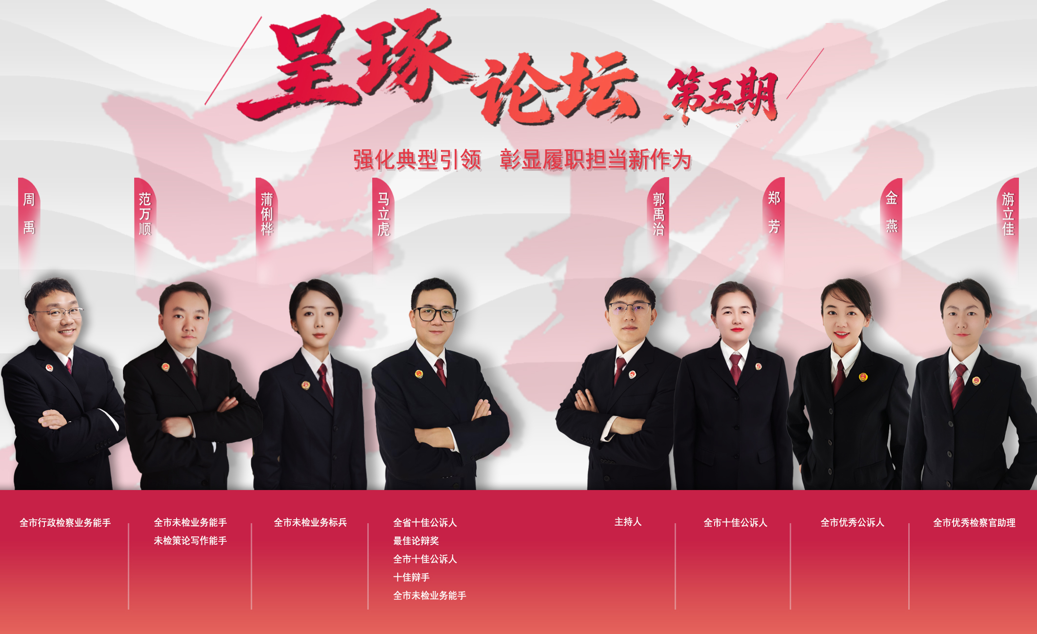 第四检察部副主任 周禹呈贡检察人员的动力来自于“不必扬鞭自奋蹄”的自我奋斗形势推进而来的浪潮压力,一波一波的浪花接连不停,推着我们融于其中,逐浪前行。因此,我们要站稳自身所处的位置,锚定自身前进方向,在院党组的专业化培养中扮演好自身角色,站定自身岗位,在日常履职中锤炼好自身的履职能力;要顺应浪潮前进奋力划桨,给自身树立高标准,在人人争先的浪潮里“随波逐流”,不甘人后。