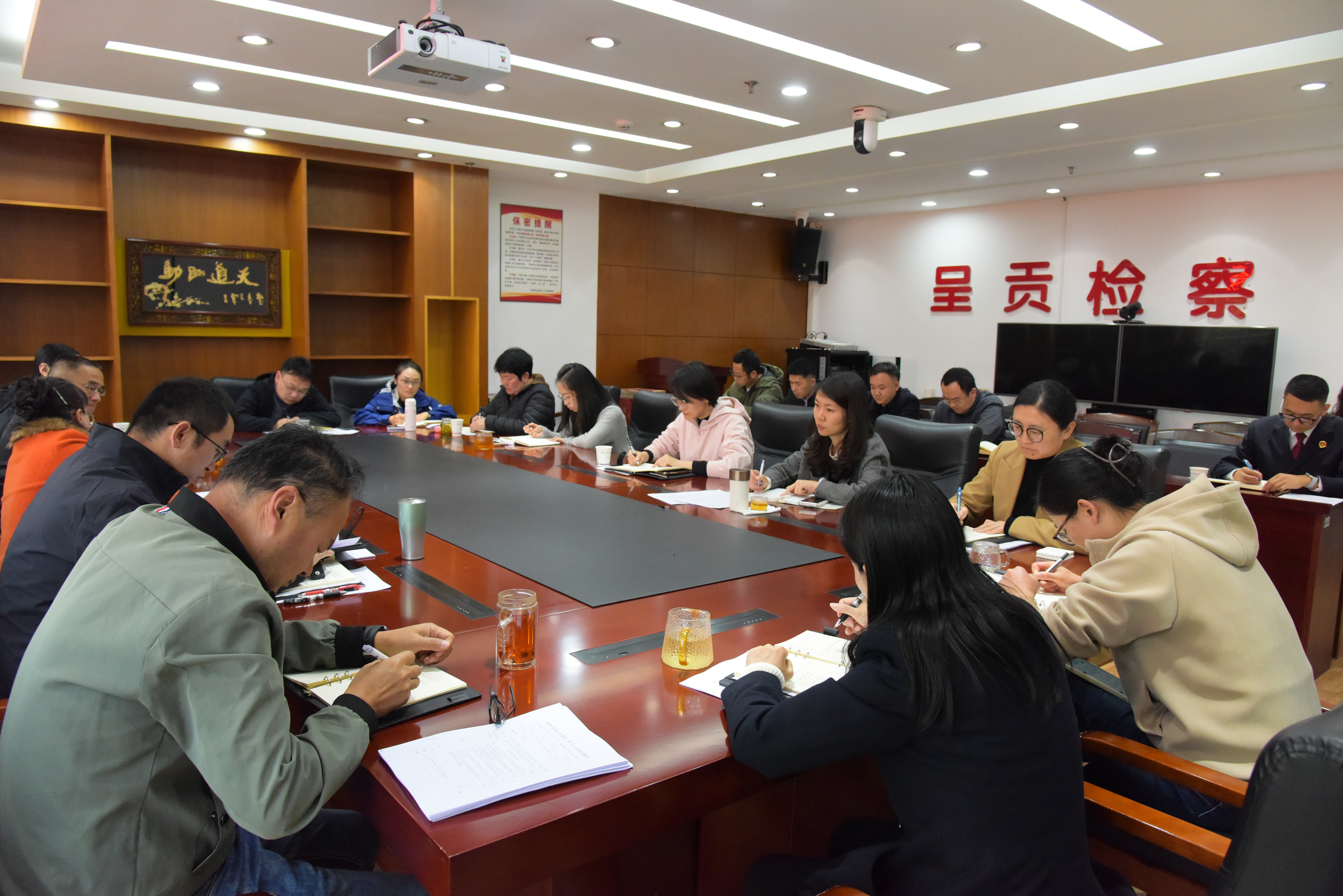 3月4日,呈贡区人民检察院召开检察长办公会,专题传达全市检察长会议精神,研究部署贯彻落实举措。院党组书记、检察长李鹃主持会议并讲话,院领导班子成员、各部门各条线负责人参加会议。