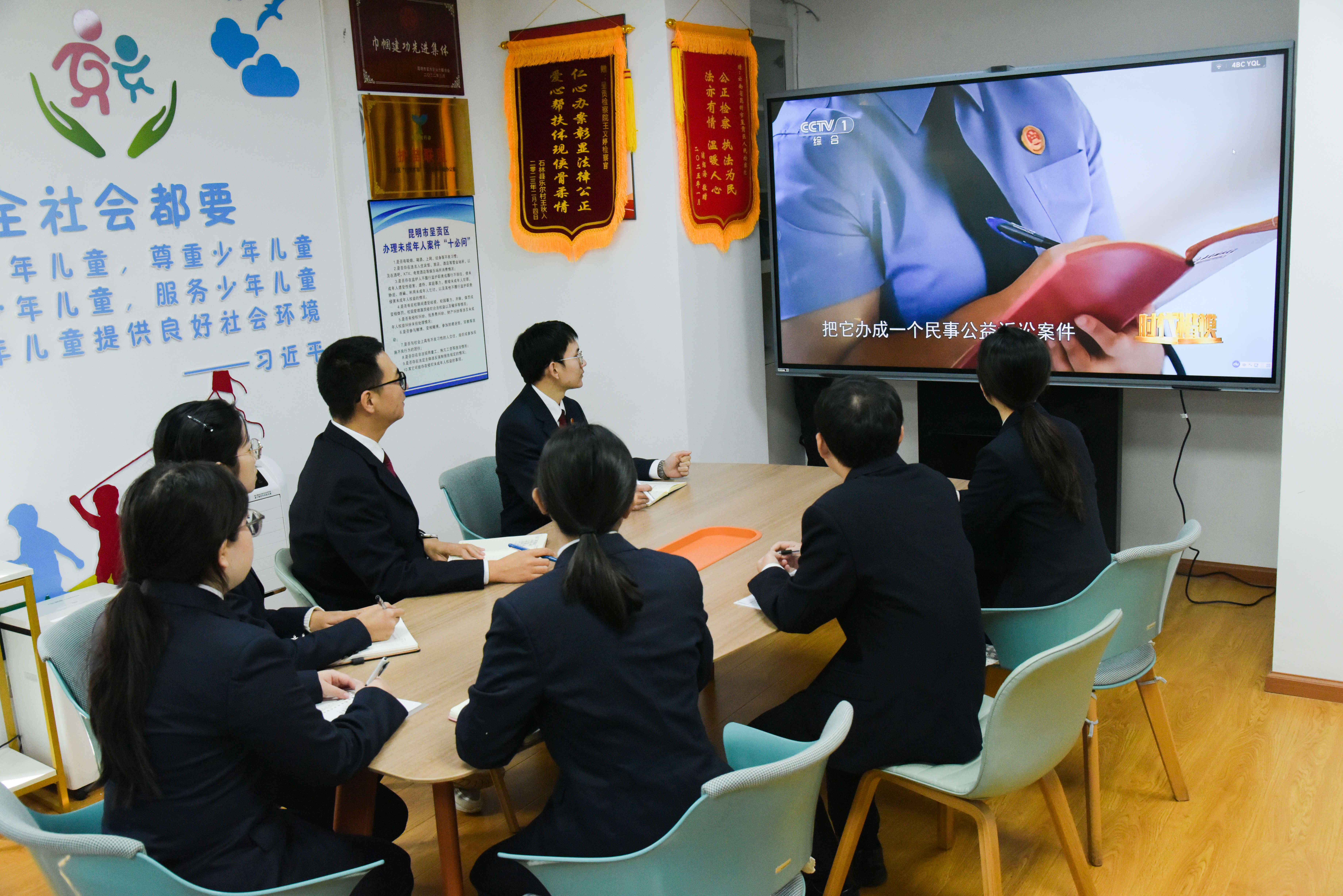 为深入贯彻落实“时代楷模”重庆检察未成年人保护工作团队代表先进事迹报告会精神,进一步推动呈贡区人民检察院未检团队建设,11月12日,未成年人检察“苔花工作室”全体干警集中观看了重庆“时代楷模”渝检护未团队先进事迹专题片,开展互动研讨,通过学习榜样精神、交流心得感悟,为下一步未检工作谋思路、定方向。